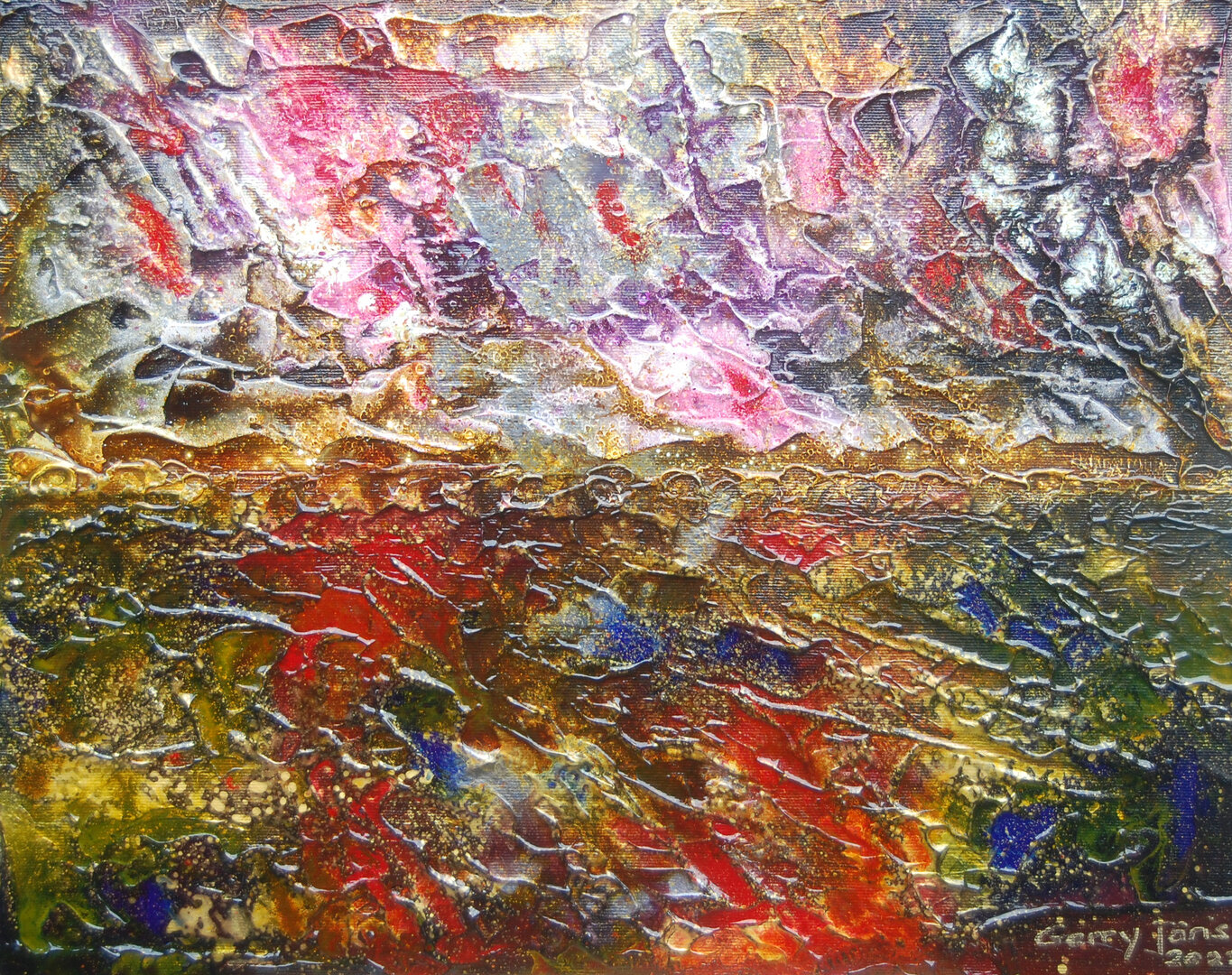 Hierbij heb ik diverse technieken toegepast, zoals paletmes en hele oudewetse vaatwaskwasten.
