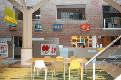 - 19 juli t/m 7 oktober 2019 Gedurende 3 maanden exposereerde een aantal leerlingen van Marleen Bakker Verpleeghuis De Twaalf Hoven, De Meeden 1 te Winsum. Hier was ook een aantal van mijn doeken te zien zijn.